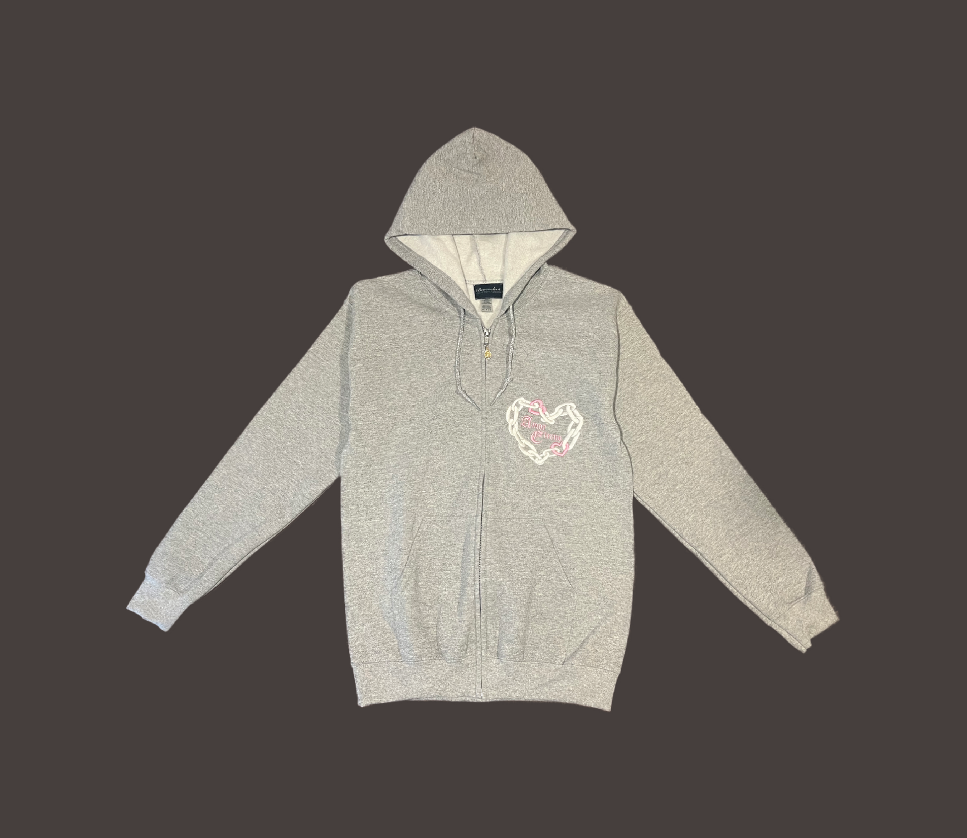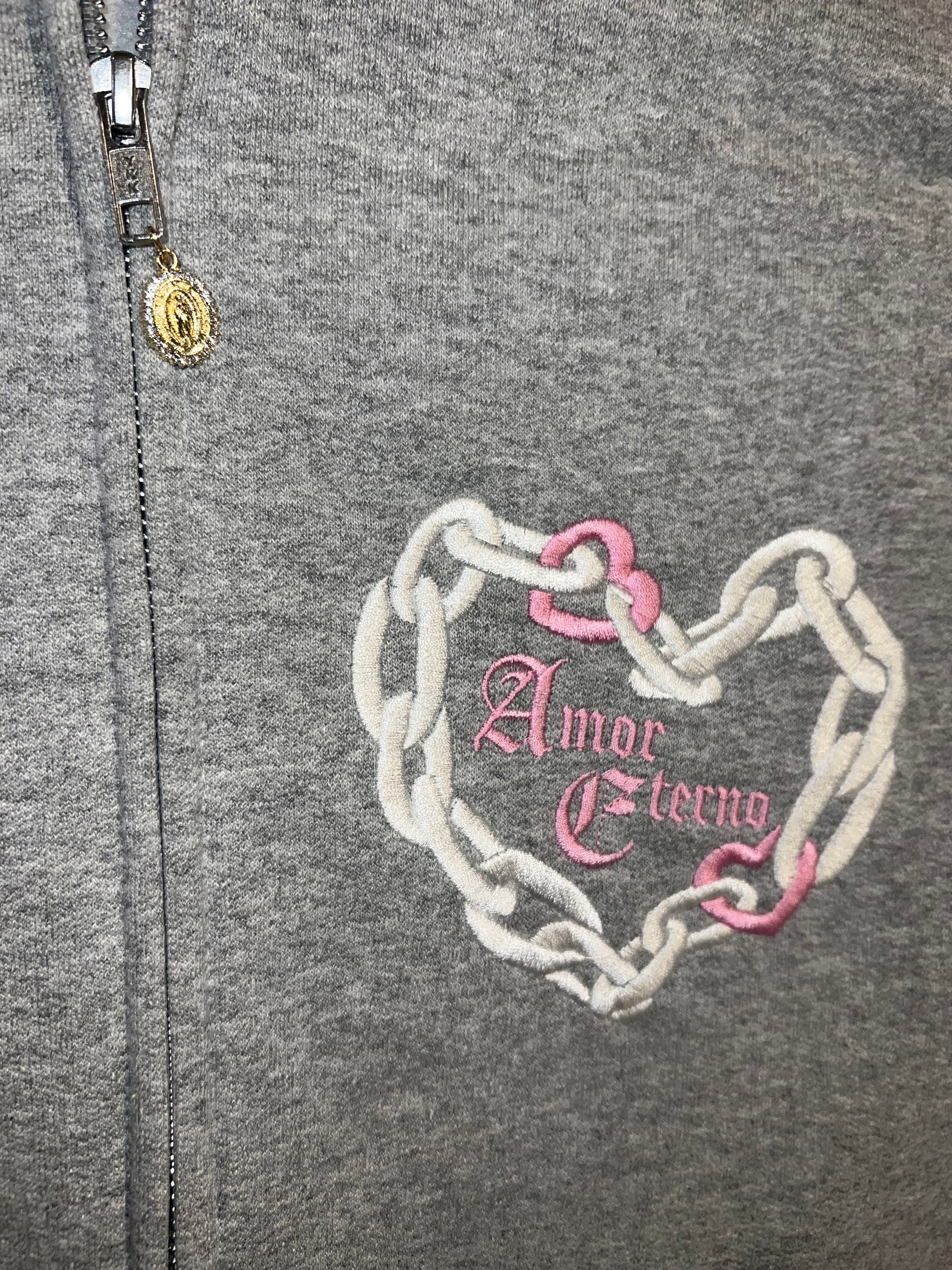 "Amor Eterno" Embroidered Gray Cloud Full Zip Sweater